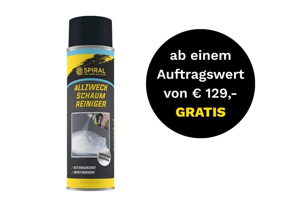Ab einem Auftragswert von € 129,- netto erhalten Sie den SPIRAL Allzweck-Reinigungsschaum gratis zum Einkauf dazu.