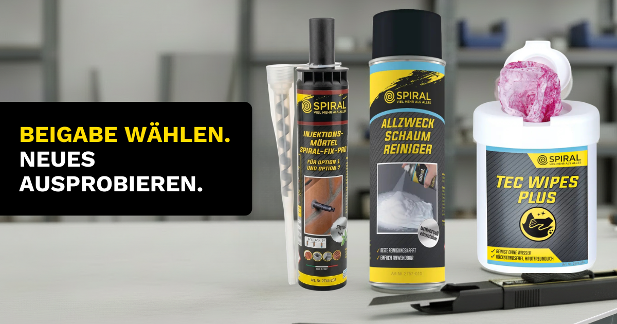 SPIRAL-FIX-PRO Injektionsmörtel gratis zum Einkauf dazu.